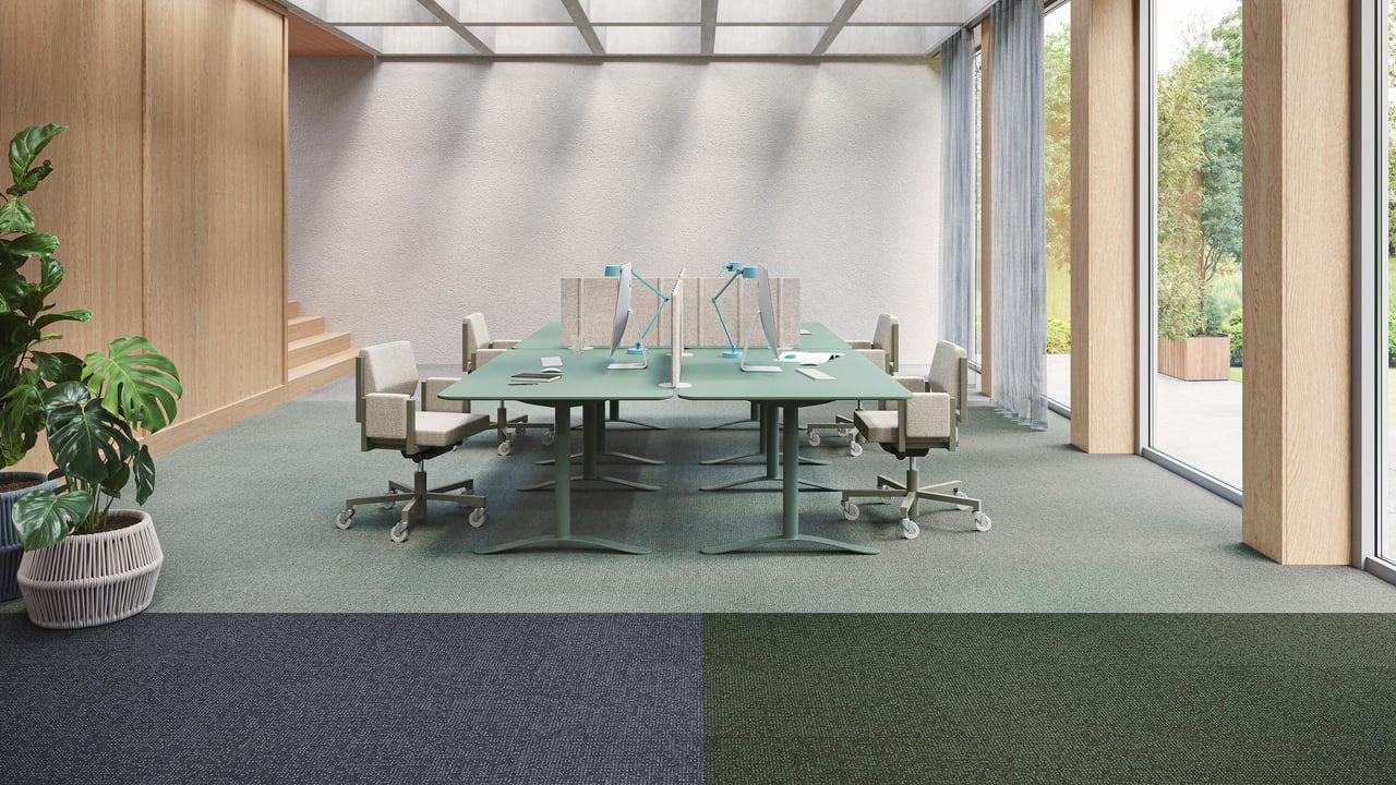 Akoestische en geluidsabsorberende materialen helpen met het beheersen van geluidsniveaus, kan geluidsoverlast verminderen en de concentratie verbeteren. Denk aan strategisch geplaatste wandpanelen of een akoestische tapijtrug zoals onze DESSO SoundMaster®. Zo worden omgevingsgeluiden gedempt en galmen verminderd. Het effect? Meer focus onder medewerkers en minder storingen door kantoorgeluiden.